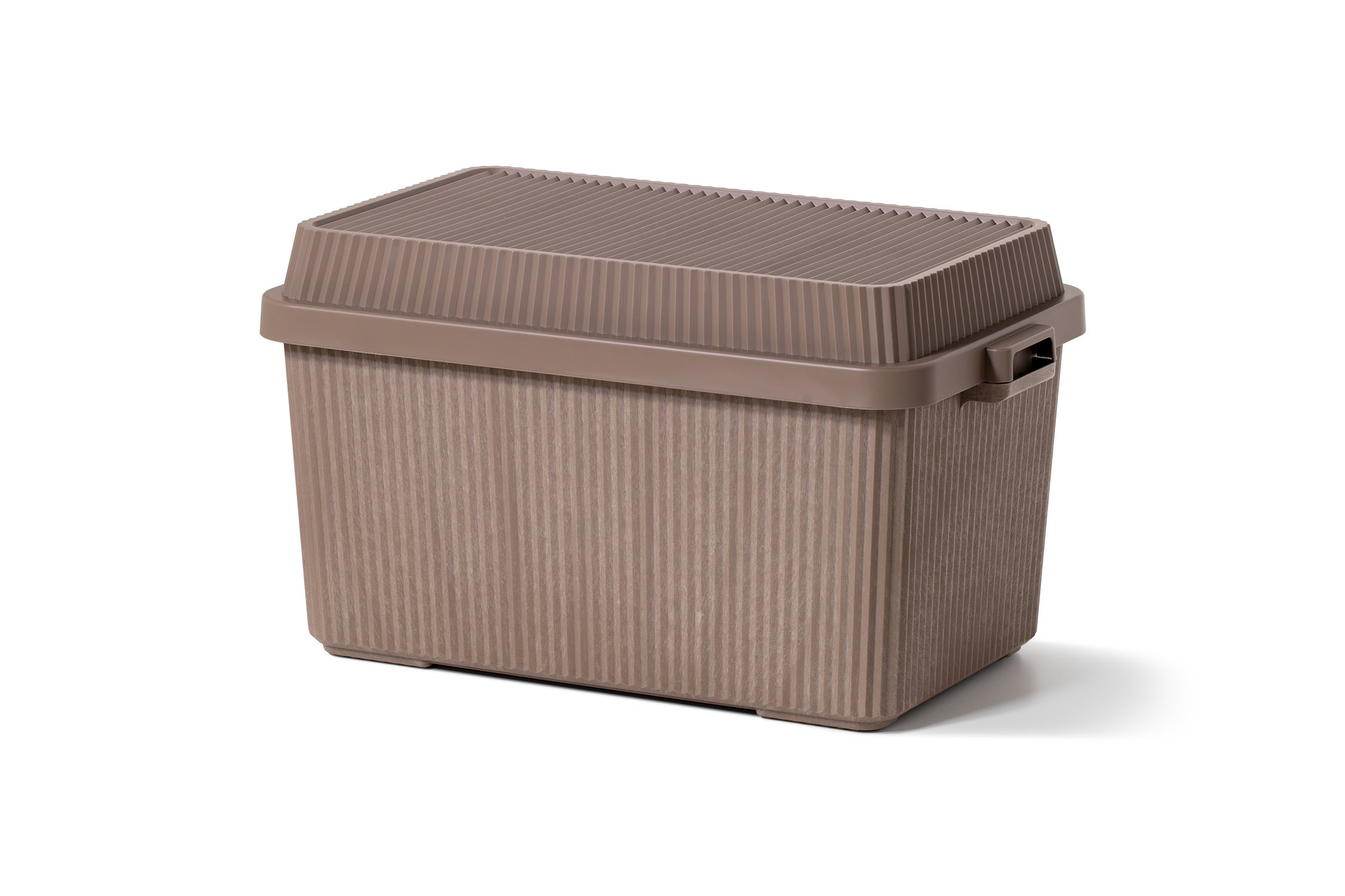 コンテナー全体に細かな面をジグザグに連結させた構造体を採用し、耐久性と容量を両立させたデザイン。