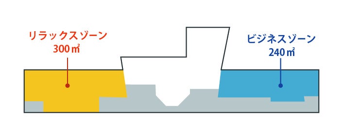 家族連れなど、複数人で利用しやすいエリア。ソファータイプの座席を 多く配置。また、席に高低差を持たせることで、特別感を感じることが できる空間を演出。 |