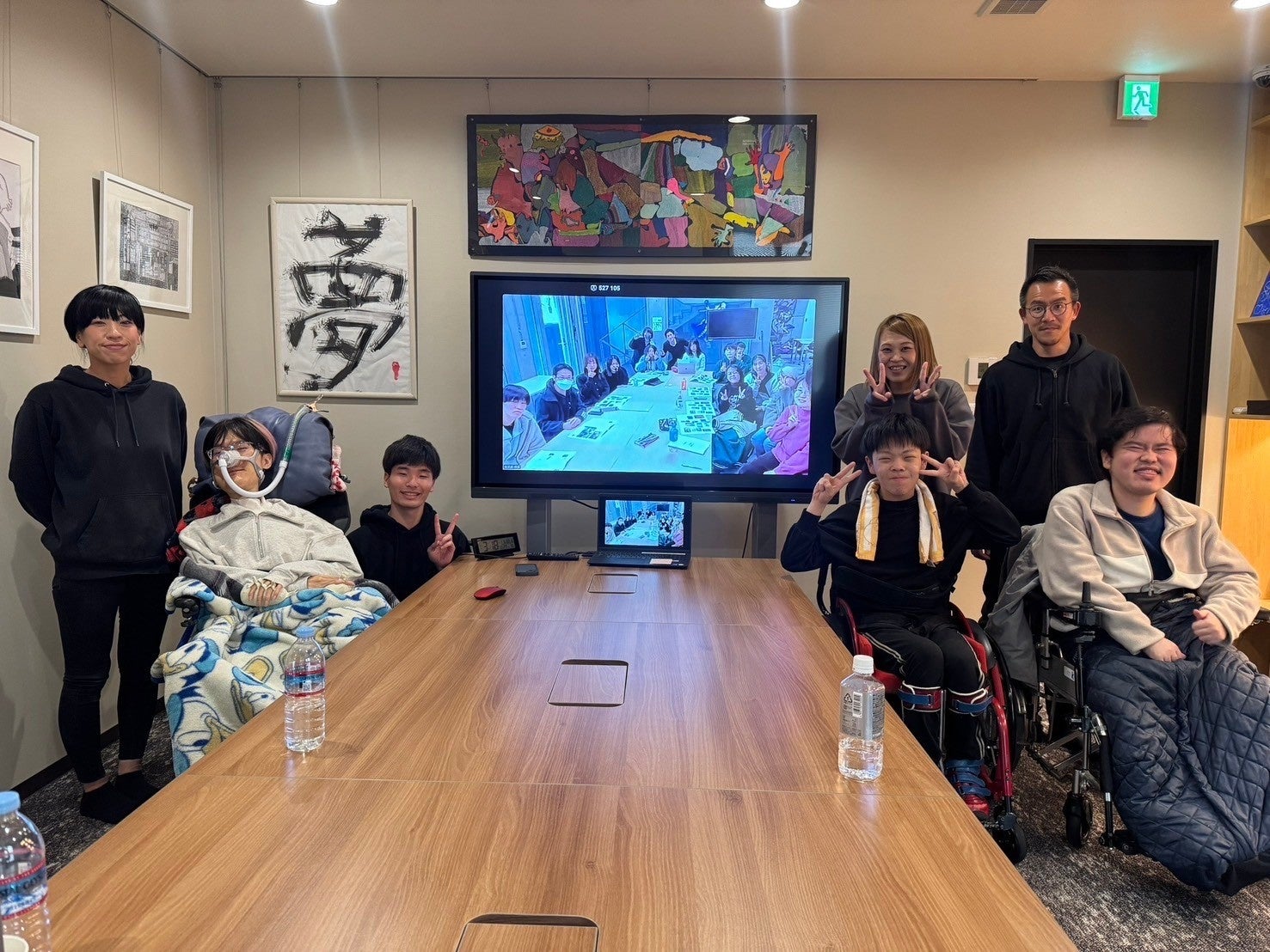 課題発表(障がい者アーティストオンライン参加) 完成した作品の発表会。稲継工務店、ノーサイドSTUDIOも参加 |