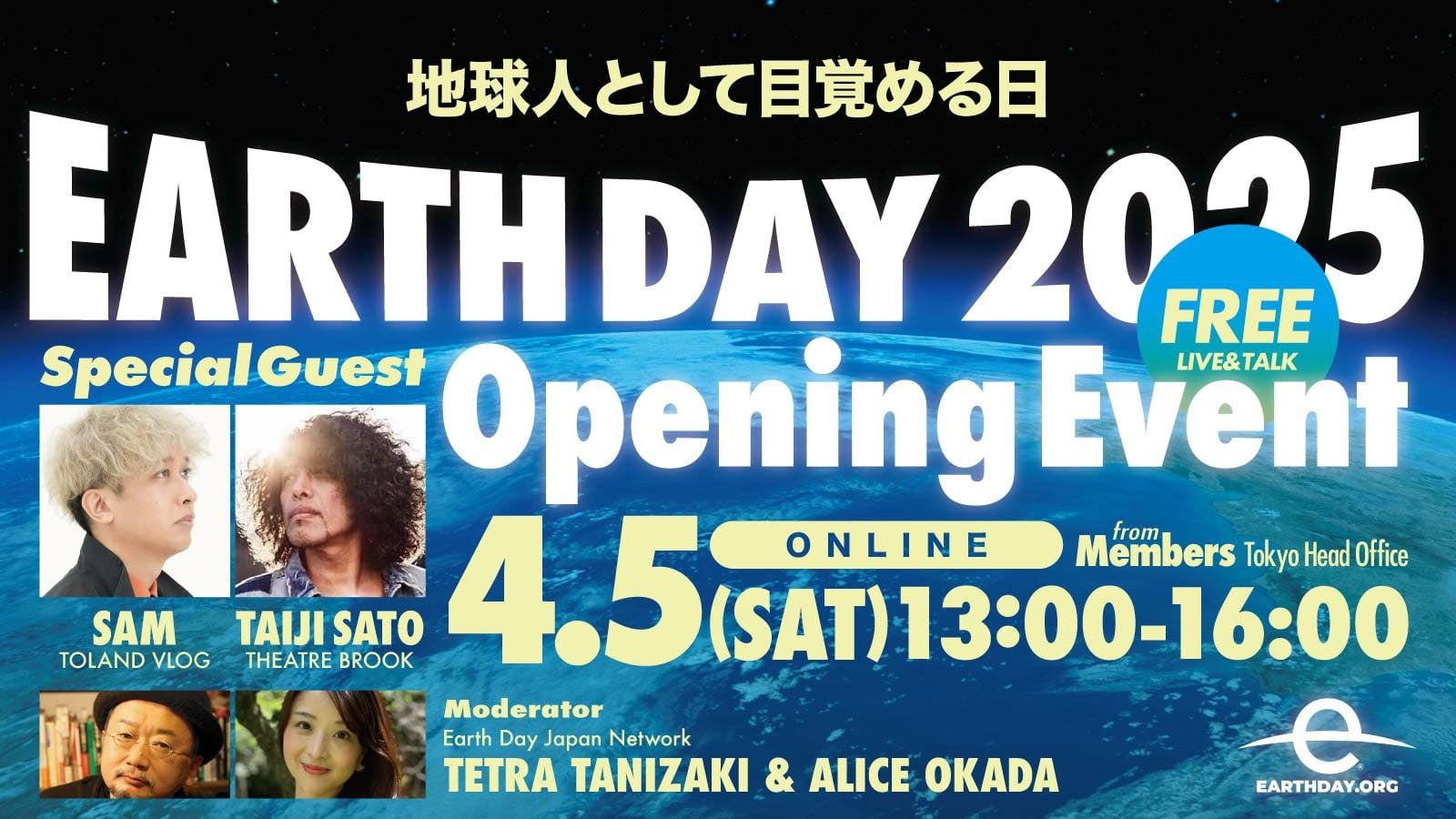 毎年 4 月 22 日の世界的な環境デイ「アースデイ」に合わせて行われる全国のアースデイ情報を発表する「アースデイジャパンオープニングイベント 2025」を 2025 年 4 月 5 日(土)に開催いたします。全国各地で催されるアースデイイベントや環境アクションなど、北は北海道から南は沖縄まで各地のアースデイ団体も登壇します。また著名なゲストを招いたトークプログラムも実施します。