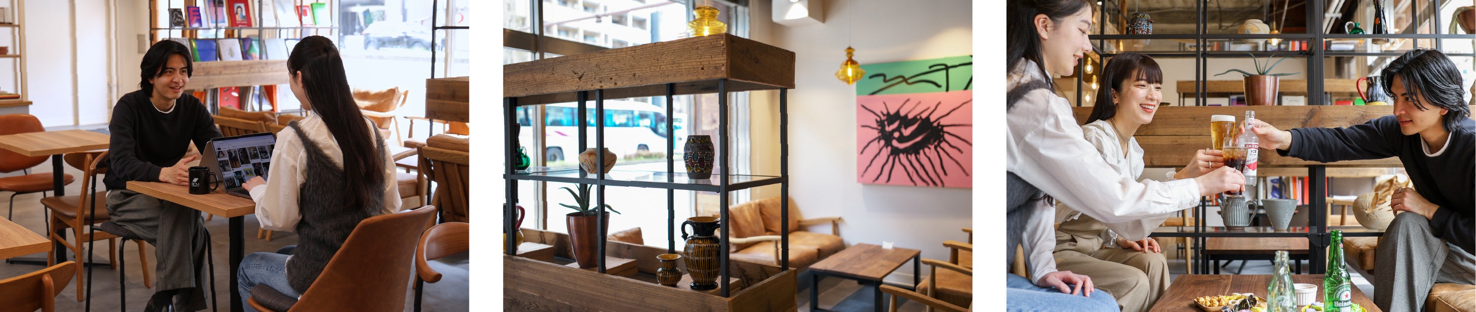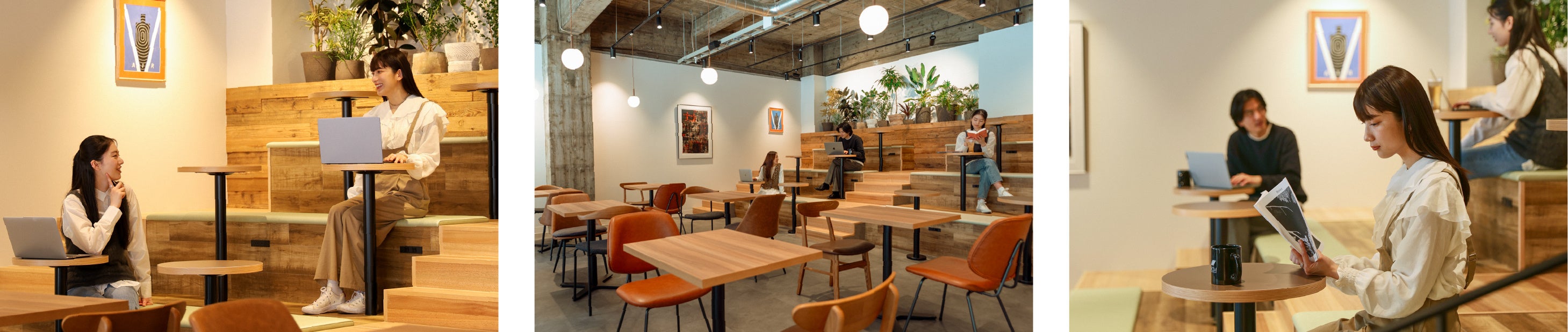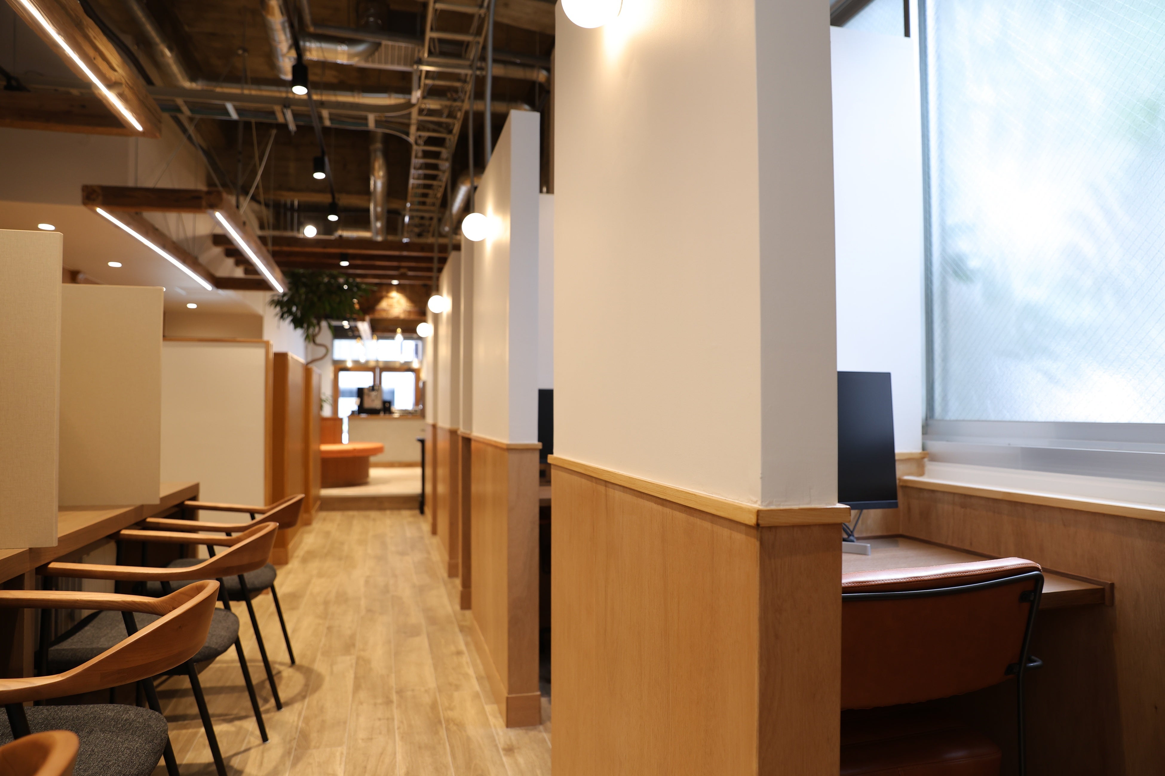 席移動も自由。気分や用途に合わせて、お好きな席をお選びいただけます。心地よい空間づくりのため、インテリアにもこだわりました。
