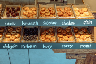 博多区中洲にある「OK Bagel」と「the from 昭和通り店」がコラボ。ほんのりビターなチョコレートや甘酸っぱいベリー、福岡ならではの明太子、食欲をそそるカレーなど、およそ10種類以上の中からお好きな味を無料でお楽しみいただけます。