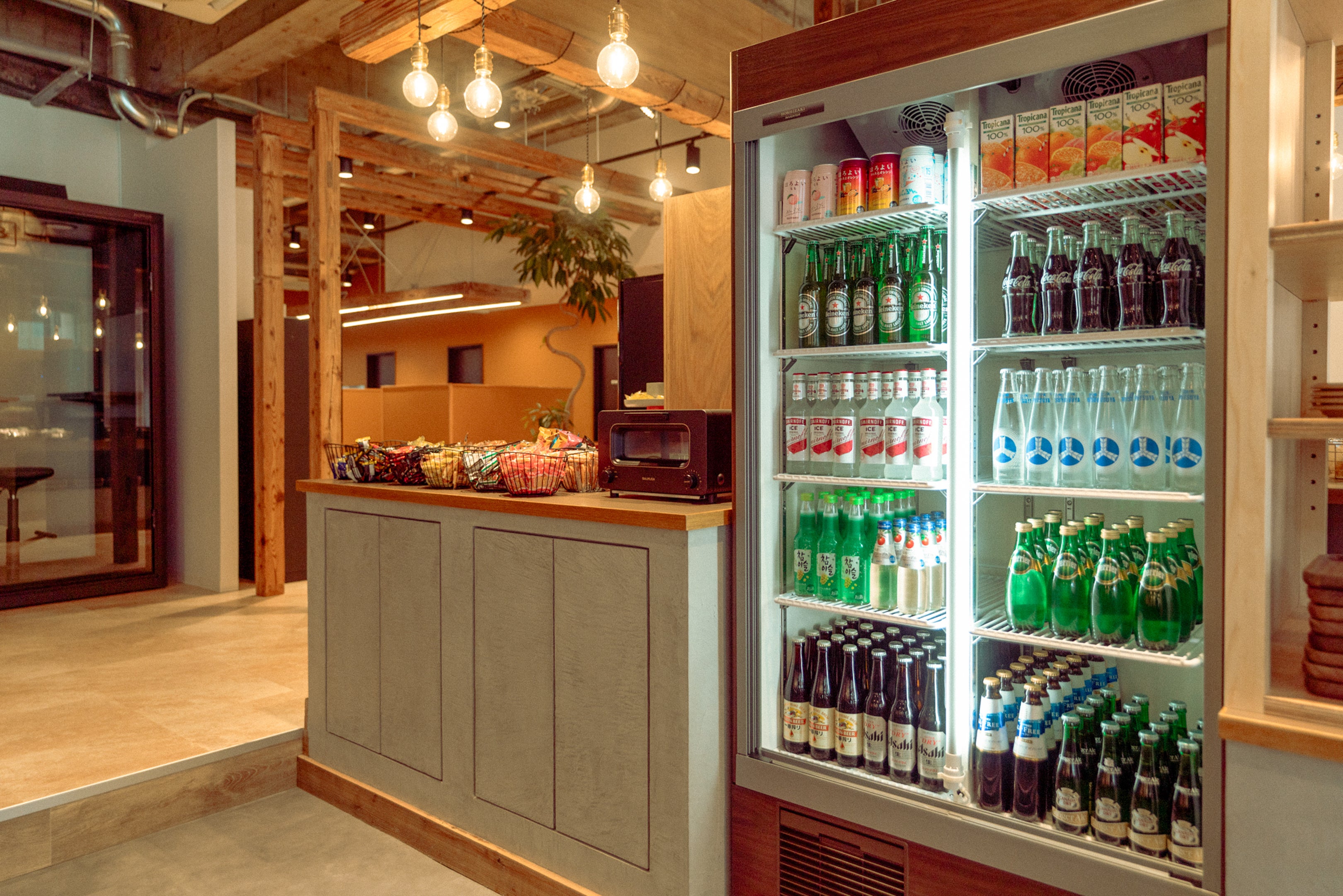 フリーでお楽しみいただける、ドリンクやスナックを揃えております。おしゃべりのおともや気分転換に。