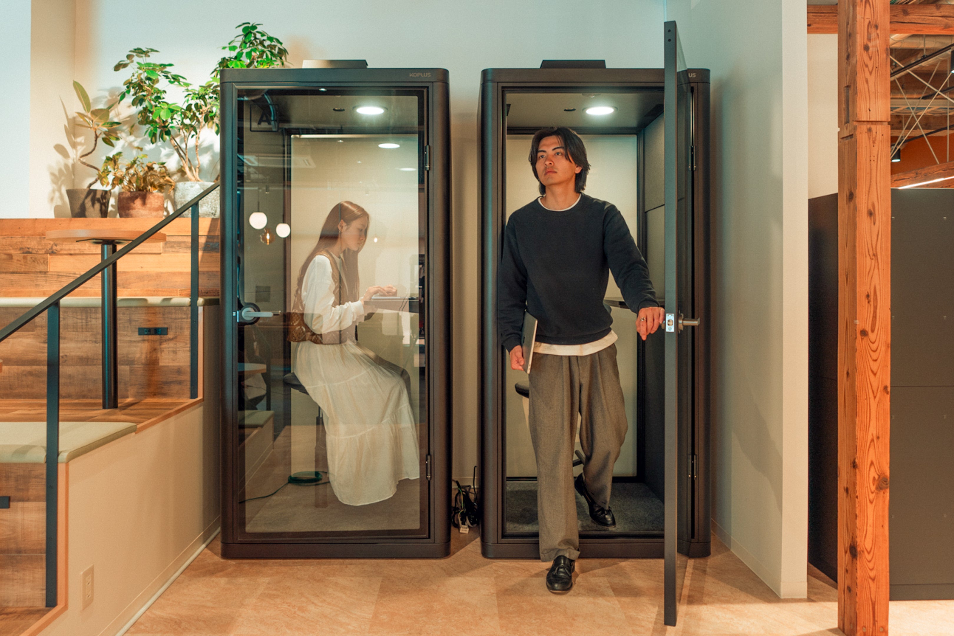 フォンブースが2室ございます。事前予約も可能。通話やWeb会議に最適な環境が整っています。