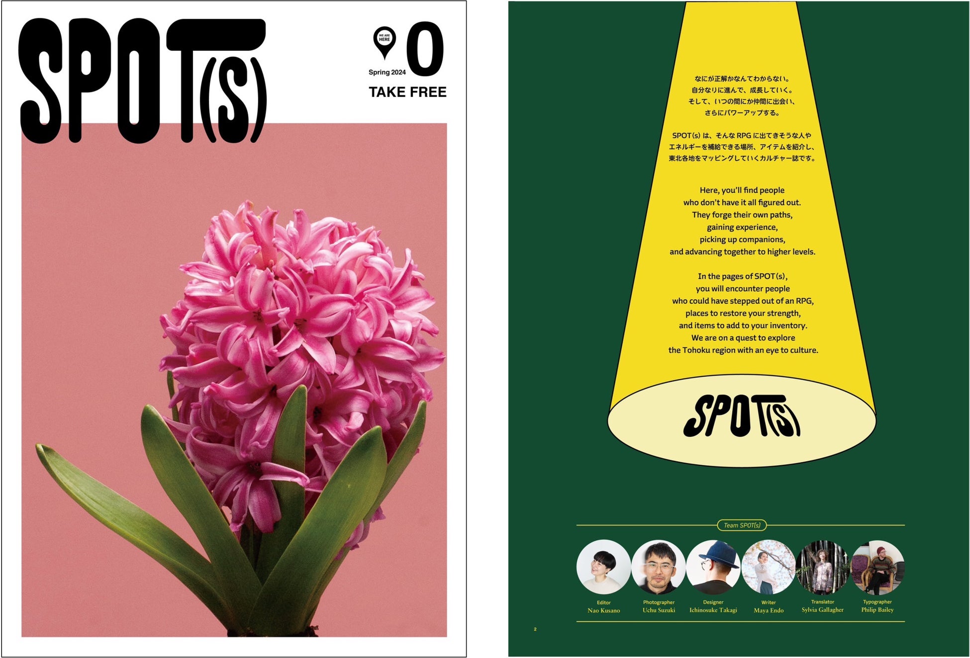 SPOT(s) は、そんな RPG に出てきそうな人やエネルギーを補給できる場所、アイテムを紹介し、東北各地をマッピングしていくカルチャー誌です。