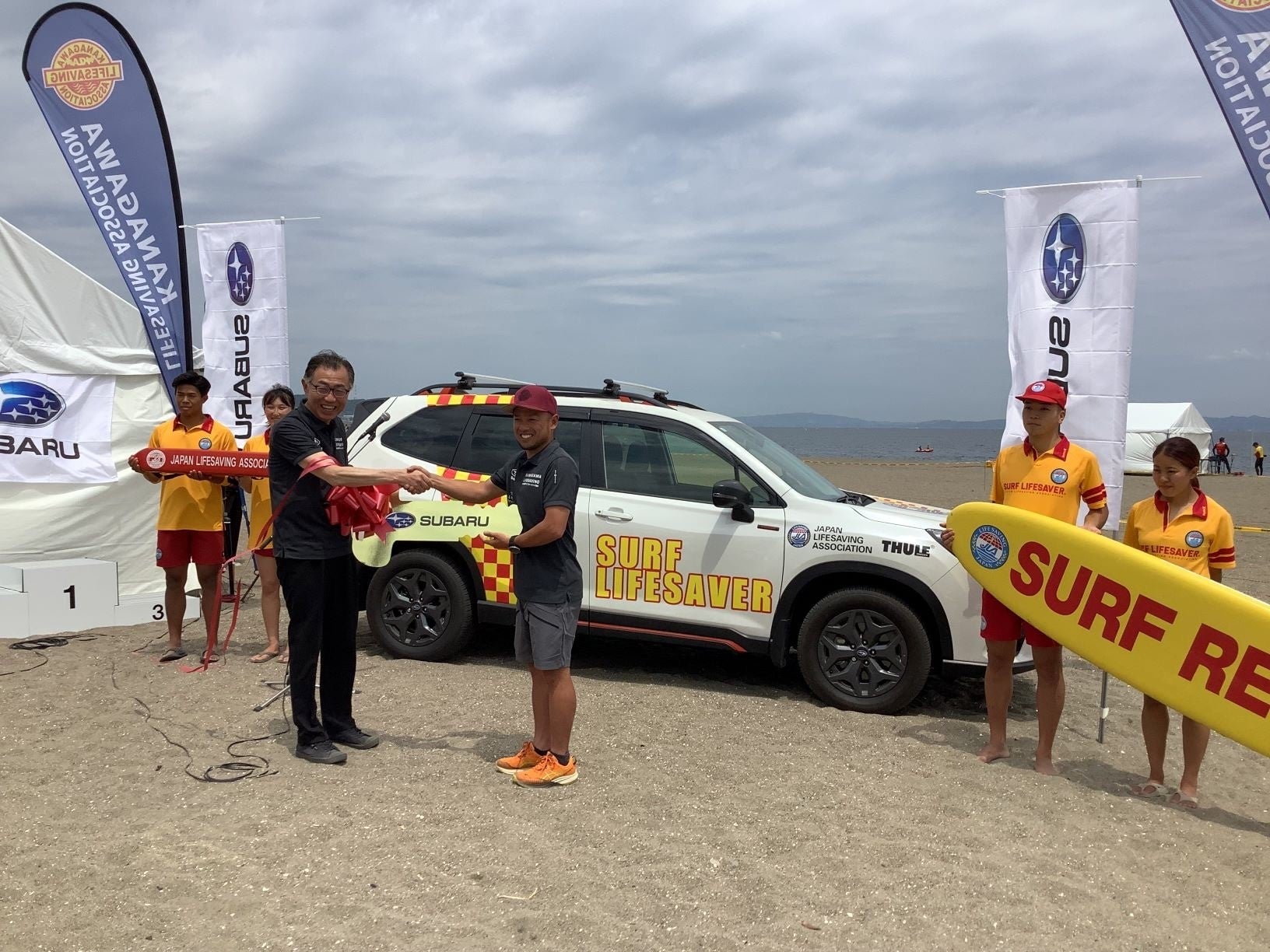 今年初の海でのライフセービング競技会「第26回神奈川県ライフセービング選手権大会」において、SUBARUライフセーバーカー貸与式を行いました。