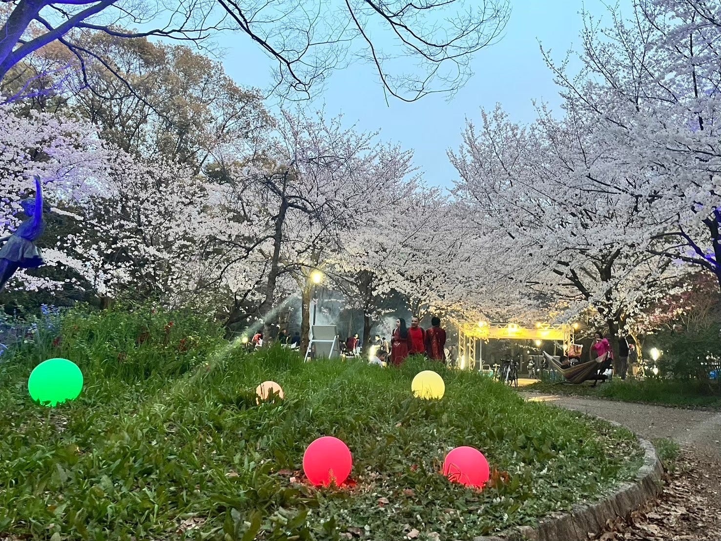 会場は大阪城公園内の「記念樹の森」のエリアで、大きな桜の木を中心とした自然を感じられる