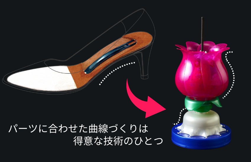 株式会社田中務補商店は、神戸で約60年続く靴部品製造の町工場です。私たちが作っている金属製の「シャンク 」は、ひとの体重を支え歩行をスムーズにするのに不可欠な、靴の中の重要部品です。しかし、海外から低価格の靴の輸入が増えたことで、国内シャンクの生産量は全盛期の3分の1程度になってしまいました。事業を畳む同業者が続出する中、世の中をぱっと明るく照らす夢ある商品を作りたいとたどり着いたのが「パーティーグッズ」。発案者のラフなイメージから現在の花の形をしたキャンドルにたどり着くまでにはさまざまな試行錯誤がありました。しかし我々にはシンプルなシャンクという商品を2000種のモデルにまで拡張したものづくりの知恵と技術がありました。「シャンクが靴を支える土台であるように、土台の上でキャンドルが動くような仕組みはどうだろう?」「シャンクの曲線を花びらのカーブ生かせるのでは?」といったアイデアを出し合い、花の形をしたキャンドルを作るに至りました。2006年に初代を発売して以来改良を重ね、2010年に2代目の「ドリームキャンドルデラックス」、2021年に3代目の「スーパードリームキャンドル」を発売しました。