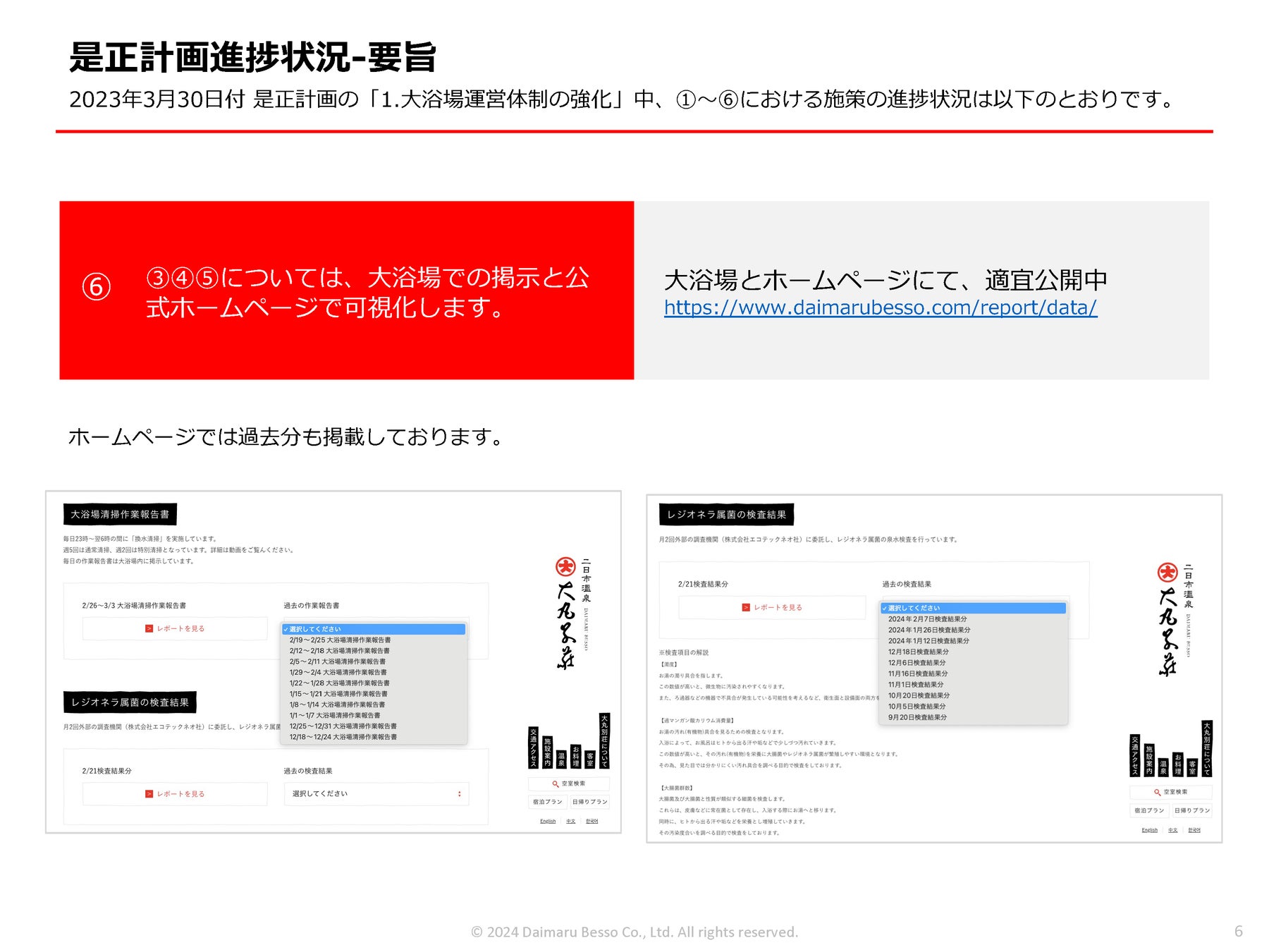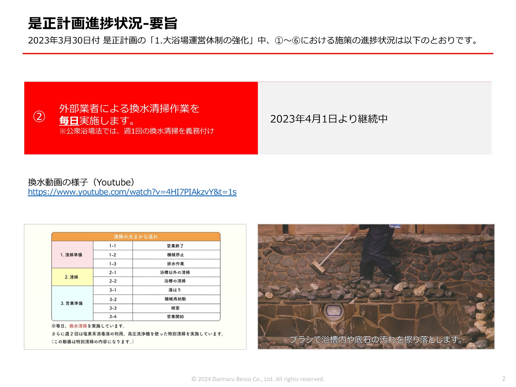 今後も全てのお客様に安心してご利用いただけるよう、大浴場の衛生管理の徹底と組織改善・ガバナンスの強化について努めてまいります。