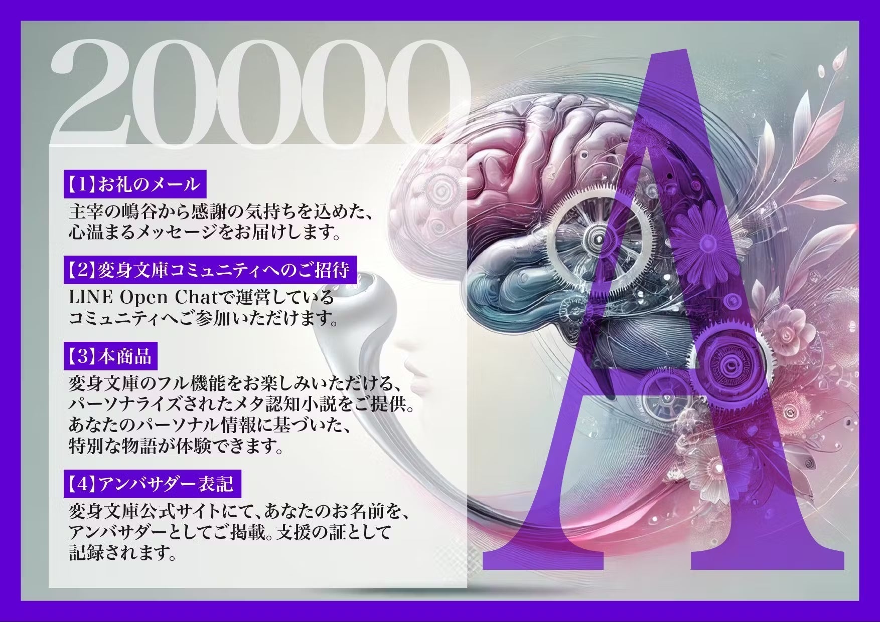 変身文庫のフル機能をお楽しみいただける、パーソナライズされたメタ認知小説をご提供。