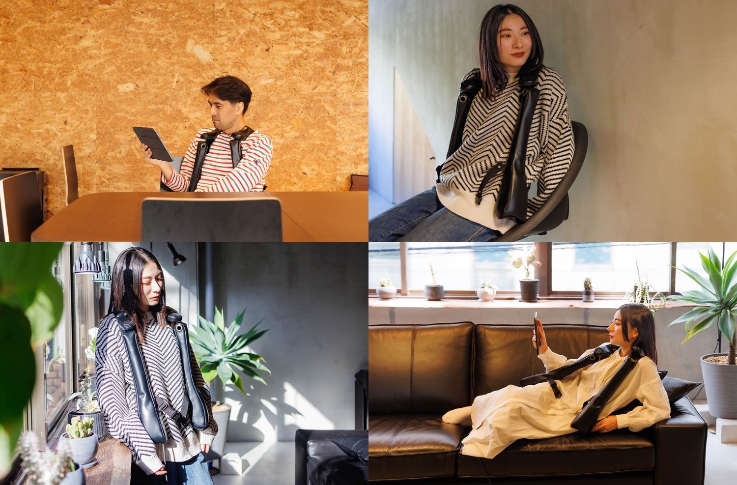 ハーネスの取り回し方、左右の低音振動部の形状や材質の選定、これらを組み合わせることで、上半身の広い範囲にわたって、適切な大きさの振動と揺れを伝えます。