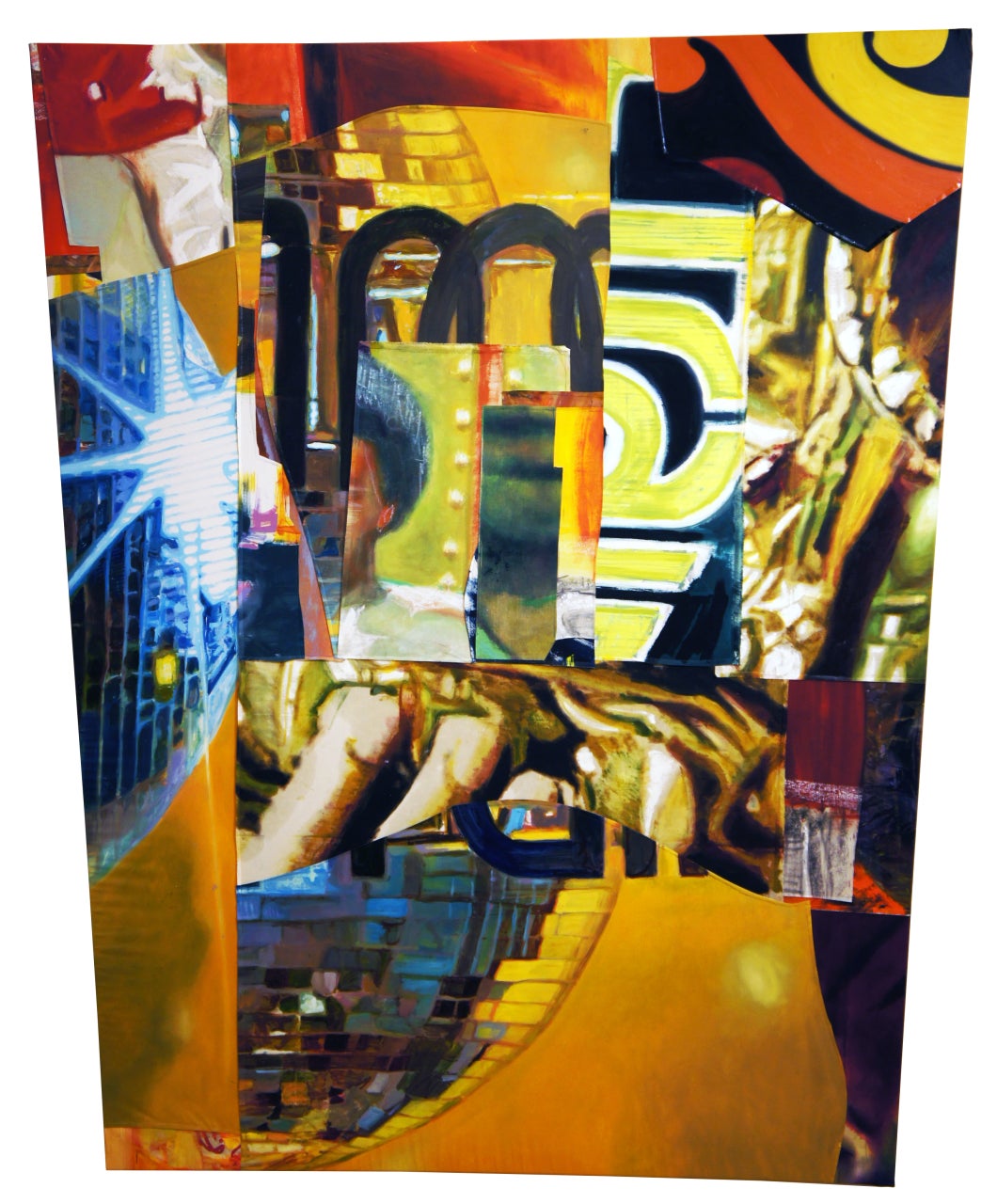 幼少期からのストリートダンス経験が、美的感覚と身体感覚に深い影響を与え、絵画制作の基盤となっています。制作プロセスはヒップホップ音楽のサンプリングに着想し、描いた絵を切り裂き、ミシンで即興的に再構築します。異なる視覚的エッセンスが組み合わさり、新しい形が生まれる瞬間に、まるでダンスのリズムとエネルギーが画面を駆け巡るような躍動感を感じます。絵画とダンスの融合から生まれる新しい表現の可能性を追求しています。