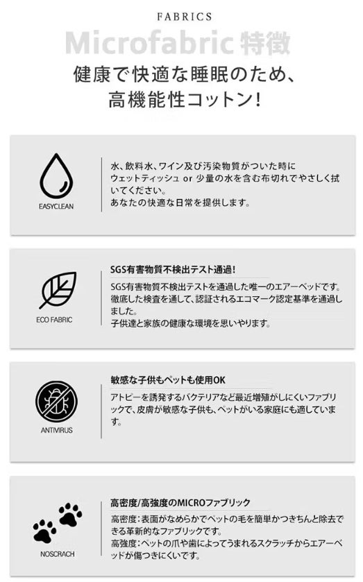また、プレミアムエアベッドにはマイクロファブリックPVCが採用されており