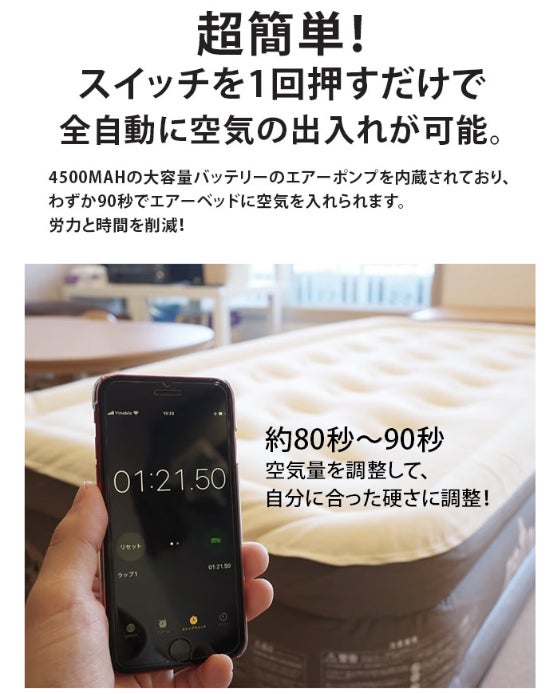 家でも、外でも、ゲスト用にも!すぐに膨らむコードレスなコンパクトベッド 3月より楽天で販売開始!!