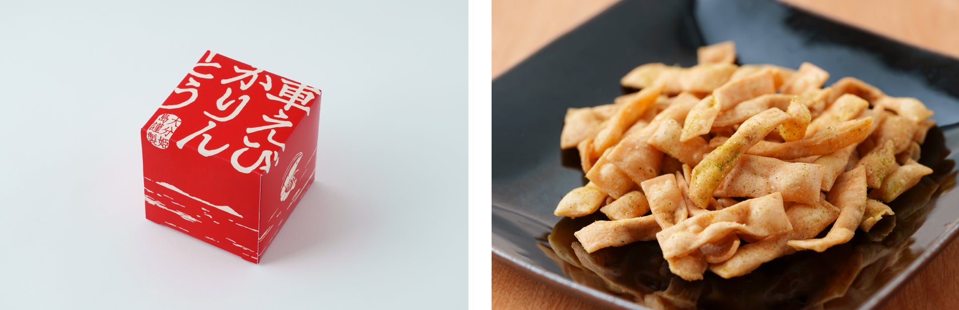 頭から尻尾までまるごと使用した姫島の車えびと天然のあおさの風味が香るお土産品