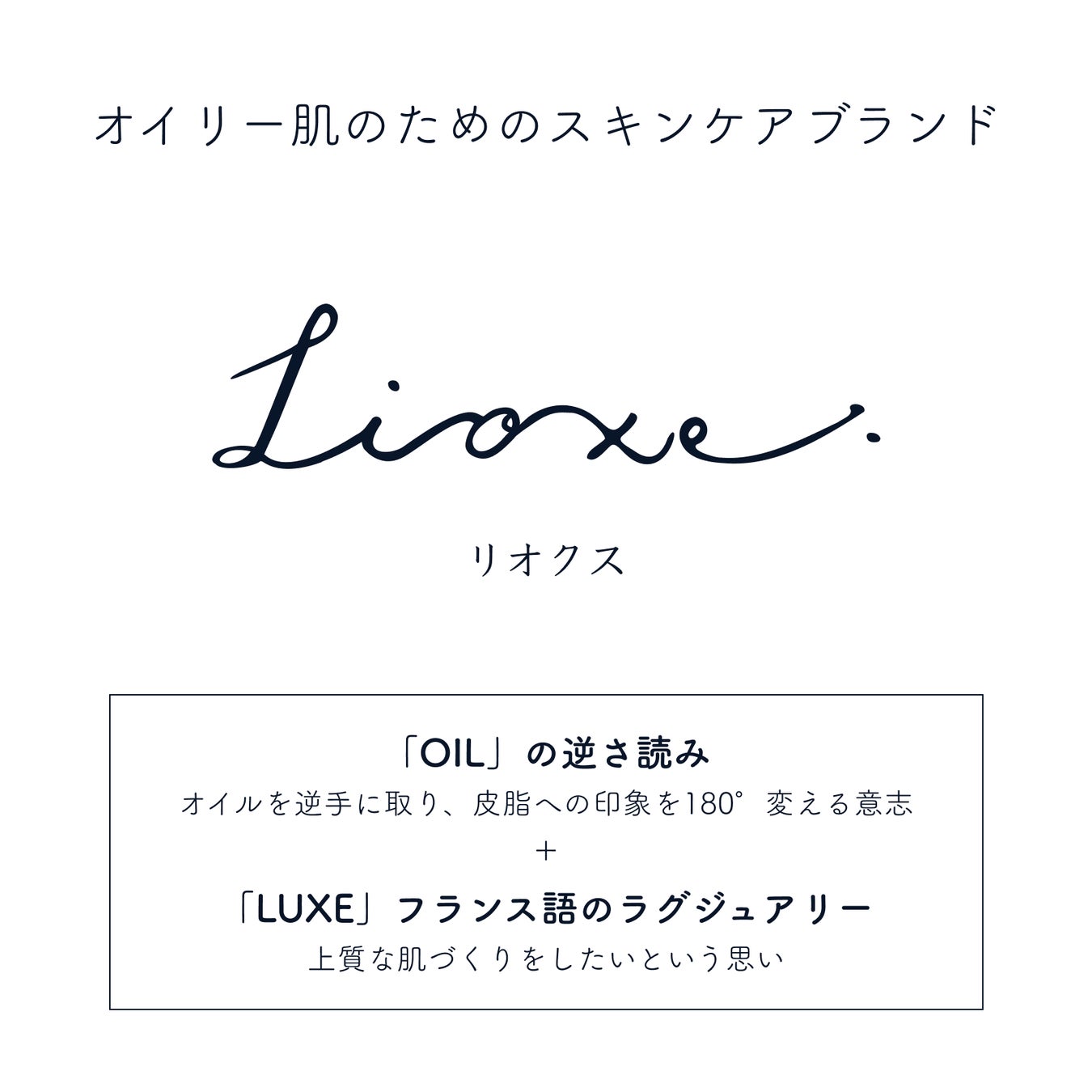 「Lioxe」はオイリー肌の人たちが「オイリー肌だから生まれながらにハリ・ツヤを与えられた魅力的な肌である」と、ポジティブな気持ちがずっと続くようなスキンケアブランドを目指します。