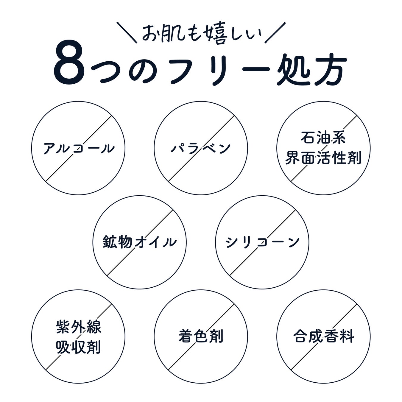 ** アルコール、パラベン、石油系界面活性剤、鉱物オイル、シリコーン、紫外線吸収剤、着色剤、合成香料