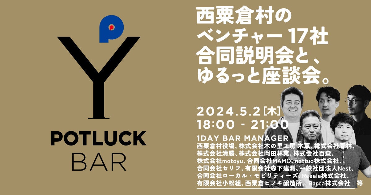 【5/2 POTLUCK BAR】西粟倉村のベンチャー17社合同説明会と、ゆるっと座談会。