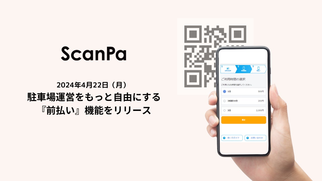 完全キャッシュレス駐車場精算サービス「ScanPa(スキャンパ)」待望の『前払い』新機能をリリース