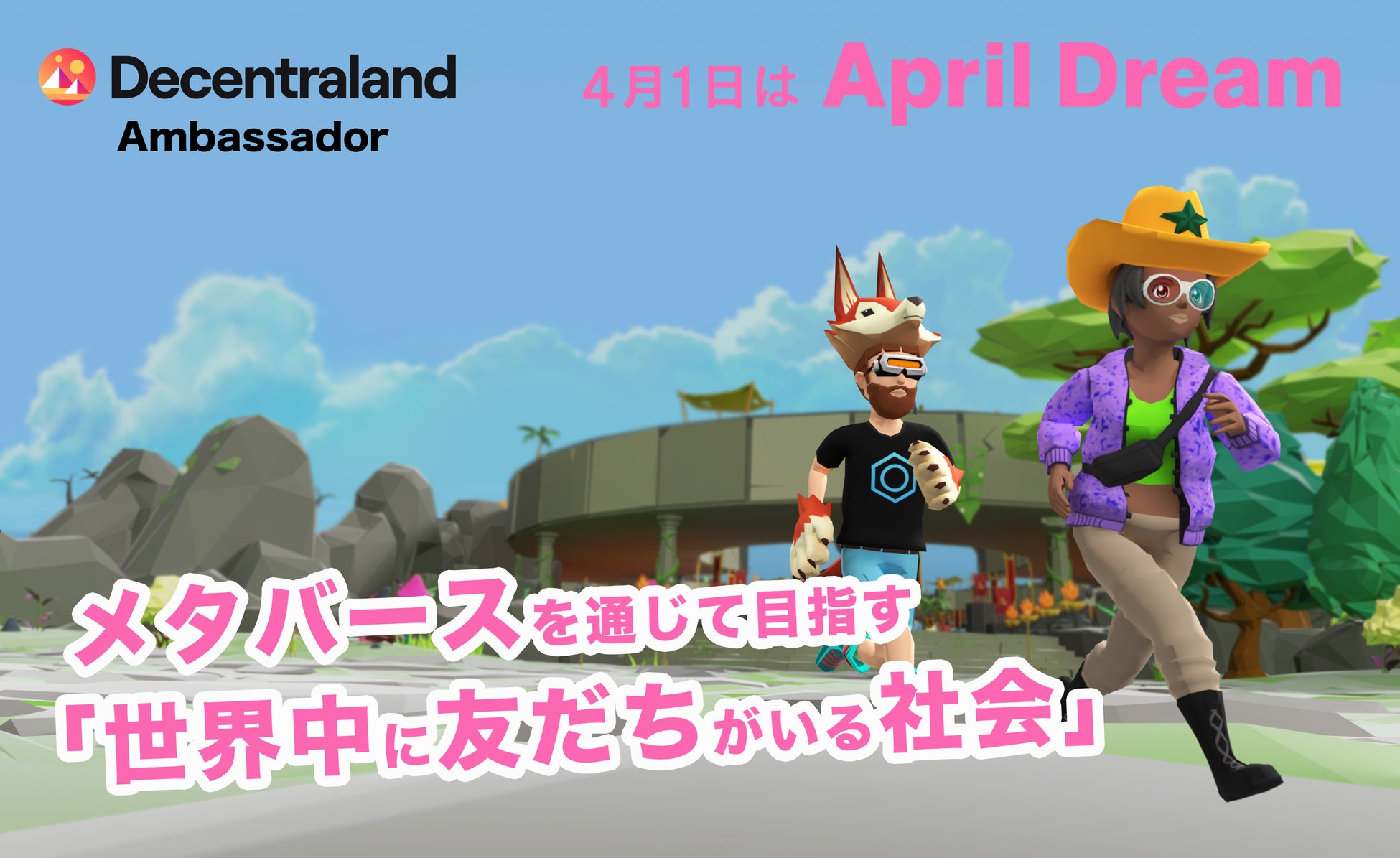 当団体は、4月1日を夢を発信する日にしようとするApril Dreamに賛同しています。 このプレスリリースはDecentraland DAO(アンバサダー KENJI)の夢です。
