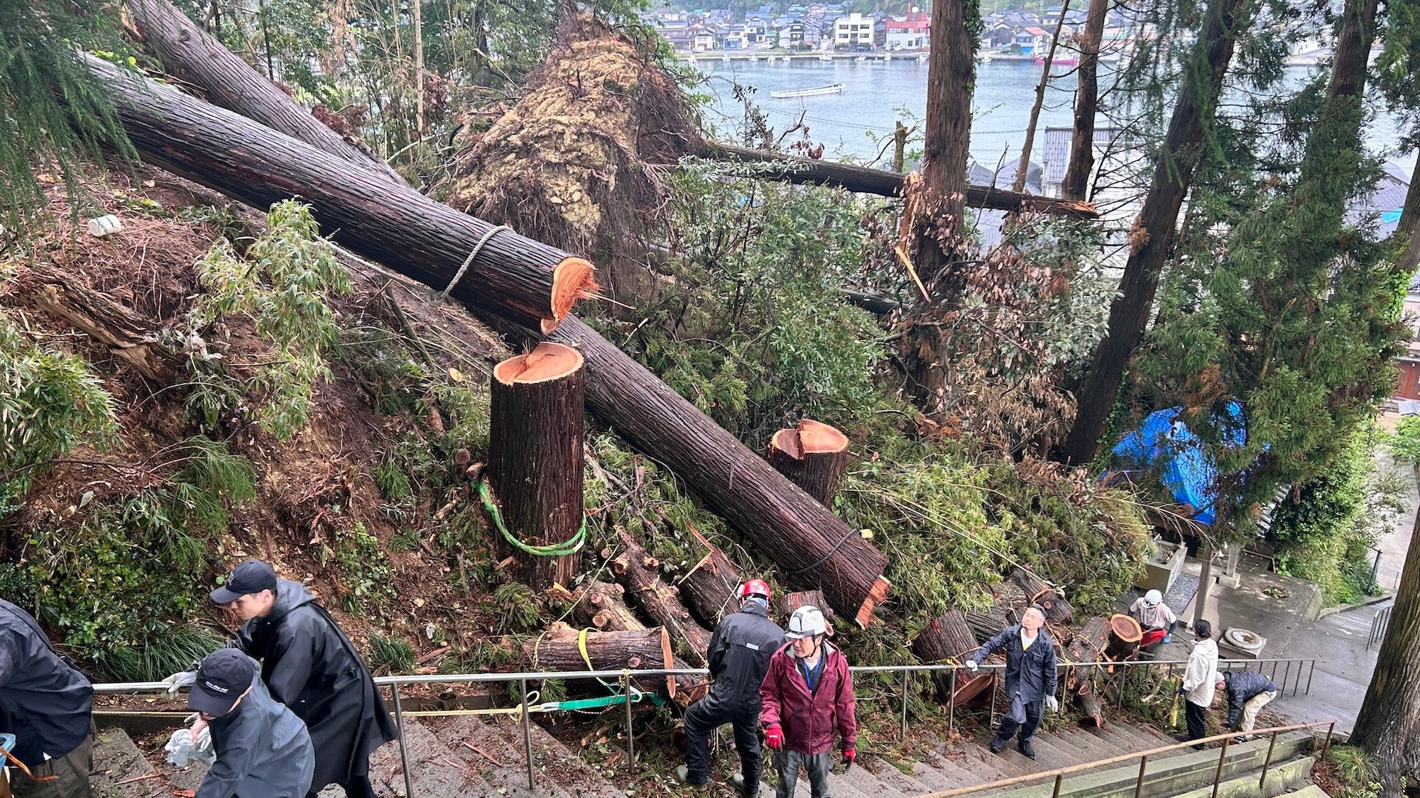 震災で倒れた巨木の撤去作業がスタート。神社の再建を通して、能登復興につなげたい