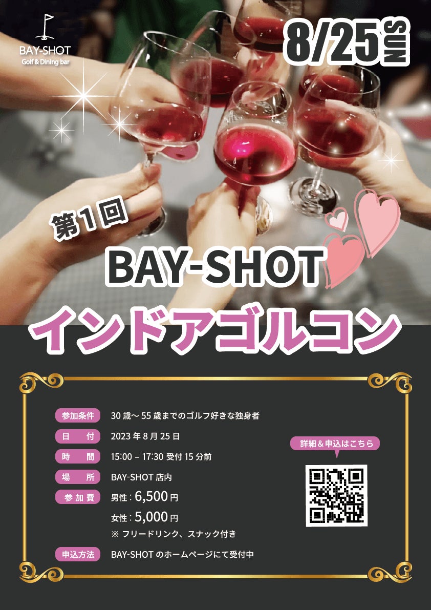 BAY-SHOTは、ゴルフ愛好者のための素敵な出会いを提供する「ゴルコン」イベントを開催いたします。ゴルフ好きな男女が集まり、楽しいひとときを過ごしながら新たな友人やパートナーと出会うチャンスです。