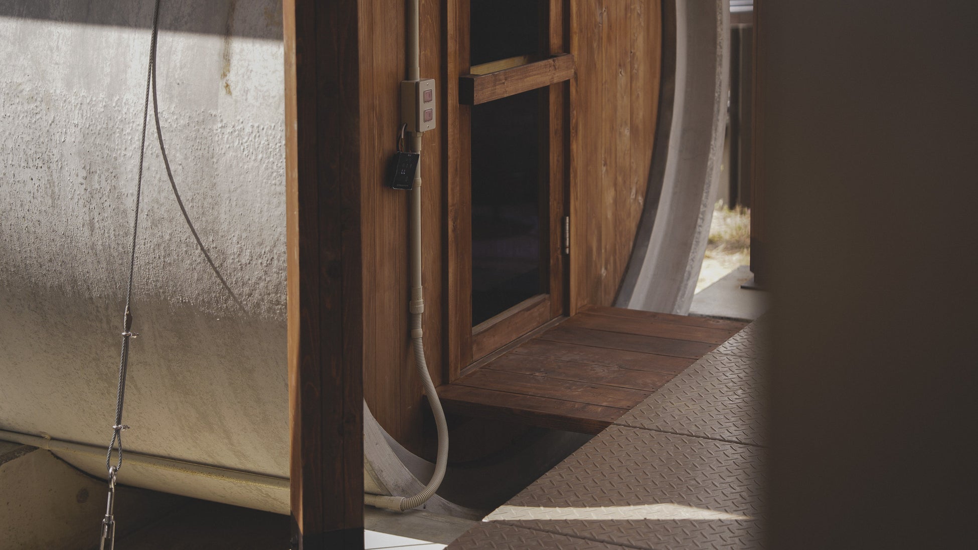 Cometa伊勢志摩ではドカンを再利用したコンクリート製サウナとミネラルが豊富な地下水を汲み上げた水風呂によって最高のととのい体験を提供します。
