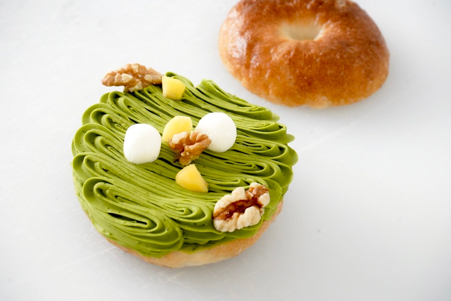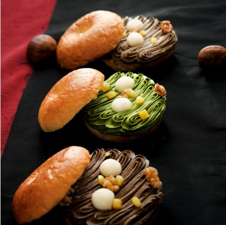 贅沢素材を惜しげもなく使用してつくられるベーグルは【ラグジュアリーベーグル】と謳われ、京都のみならず全国にファンを持っていました。そんな圧倒的クオリティと高級素材が織りなすベーグルはパンの領域を超えています。人気の「抹茶枯山水」は、新進気鋭の茶舗「SHUHARI KYOTO」の京都和束産シングルオリジン抹茶「おくみどり」をフランス産発酵バタークリームにたっぷり合わせたラグジュアリーな抹茶バタークリームが特徴です。たっぷりベーグルにサンドしたYohei Miyaguchi のシグネチャーメニューです。