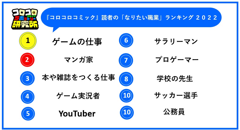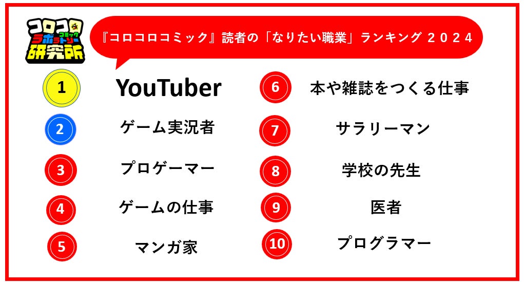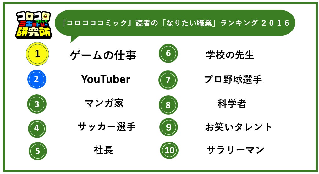 『月刊コロコロコミック』が読者アンケートを通じ男子小学生のリアルを定期レポートする『コロコロコミック研究所』を発足!読者1000名のなりたい職業ランキングを発表。堂々の1位は「YouTuber」
