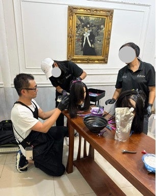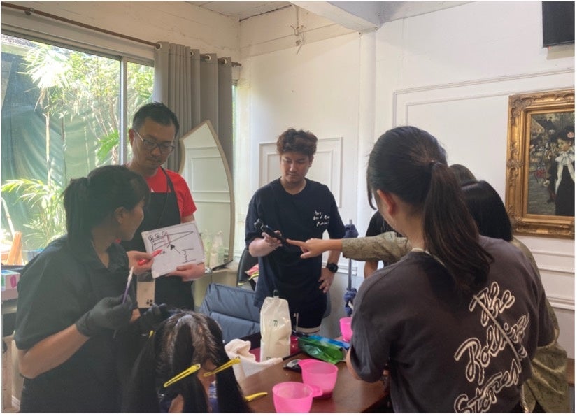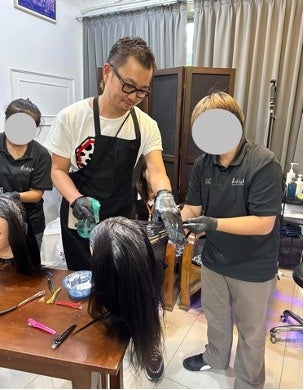 連携事業のスタートとして2024年3月28日、29日、タイ法務研究所(Thailand Institute of Justice、以下TIJ)からの依頼を受けて、元女性受刑者3人に対して2024年3月28・29日に、ヘアカラーに特化したトレーニングを実施しました。