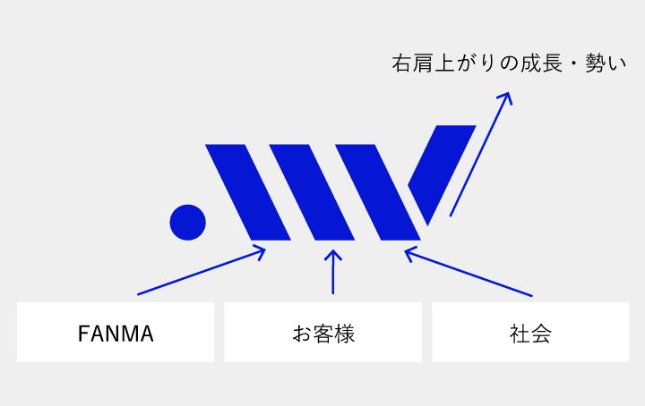 「FANMA、お客様、社会」が共に右肩上がりに成長する様子を表現しました。