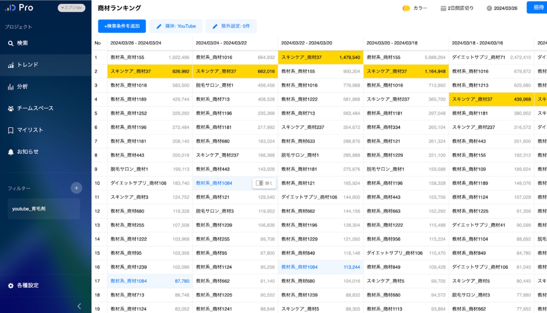 再生増加数や予想消化額といった概念を導入することにより、競合広告の調査・分析、順位変動を可視化しました。またそれらの数値を見ることで、媒体を横断して簡単に比較分析をすることができます。