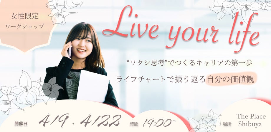 年齢や性別に関係なく、さまざまな人が自分の意志で自由にトライ&エラーできる場所を創出する株式会社フロウカ(本社:東京都千代田区、代表:児玉佳奈)では、2024年4月9日(火)と22日(月)に、The Place Shibuya(東京都渋谷区)にて、女性限定ワークショップ「“ワタシ思考”でつくるキャリアの第一歩~ライフチャートで振り返る自分の価値観~」を開催いたします。