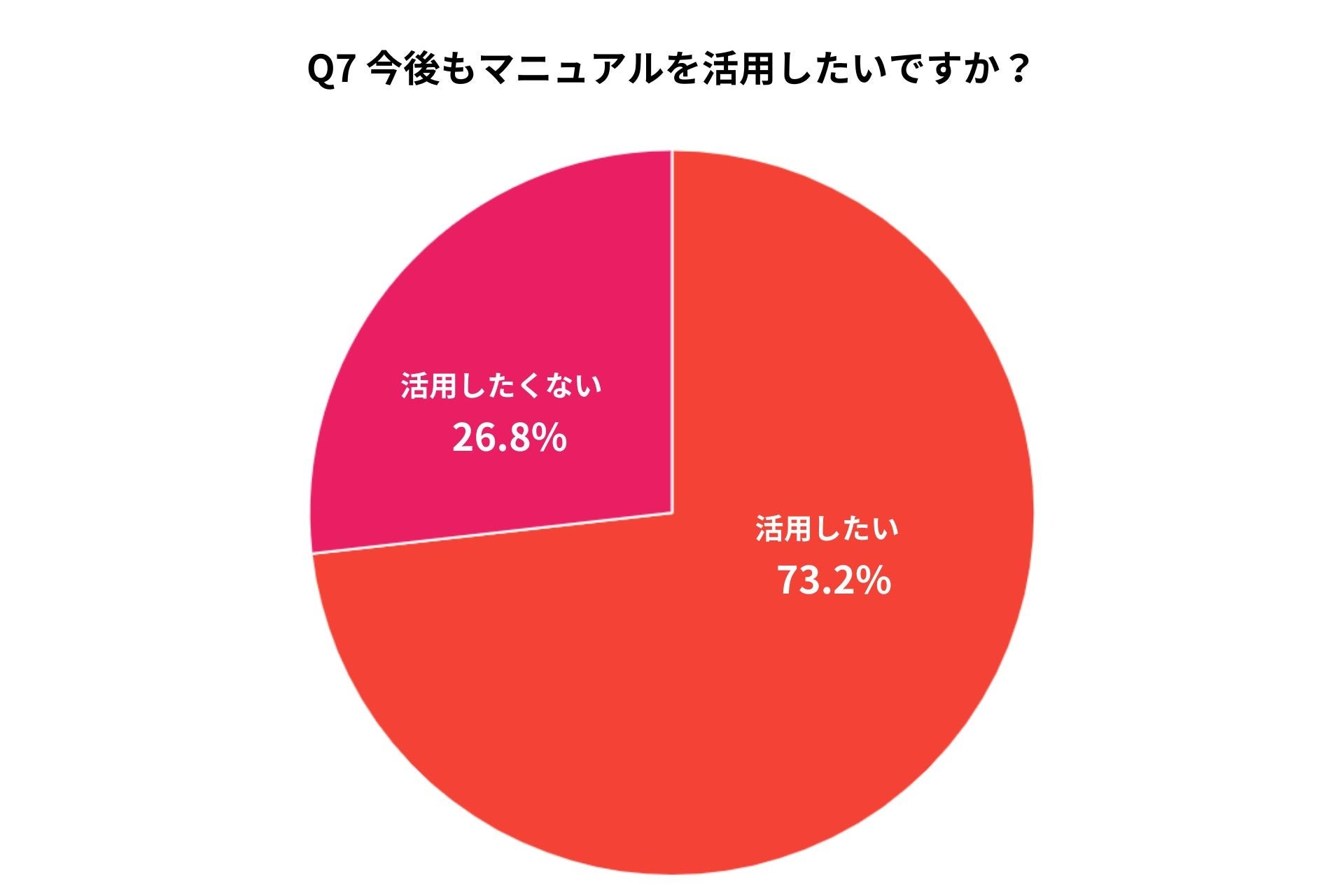 今後もマニュアルを活用したいと答えた方は、73.2%の結果となりました。