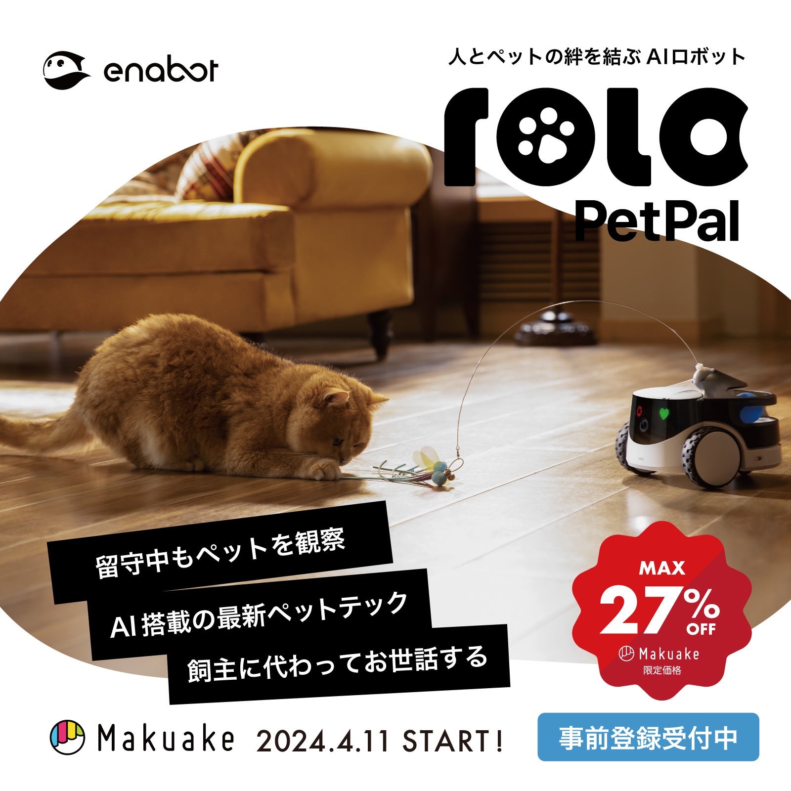 Enabot待望の新製品・人とペットの絆を結ぶ最新ペットテック「ROLA PetPal」2024年4月11日よりMakuake先行販売スタート!