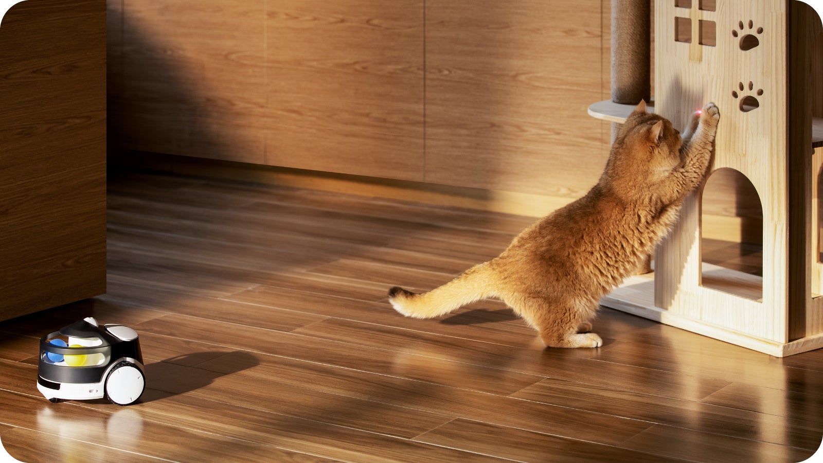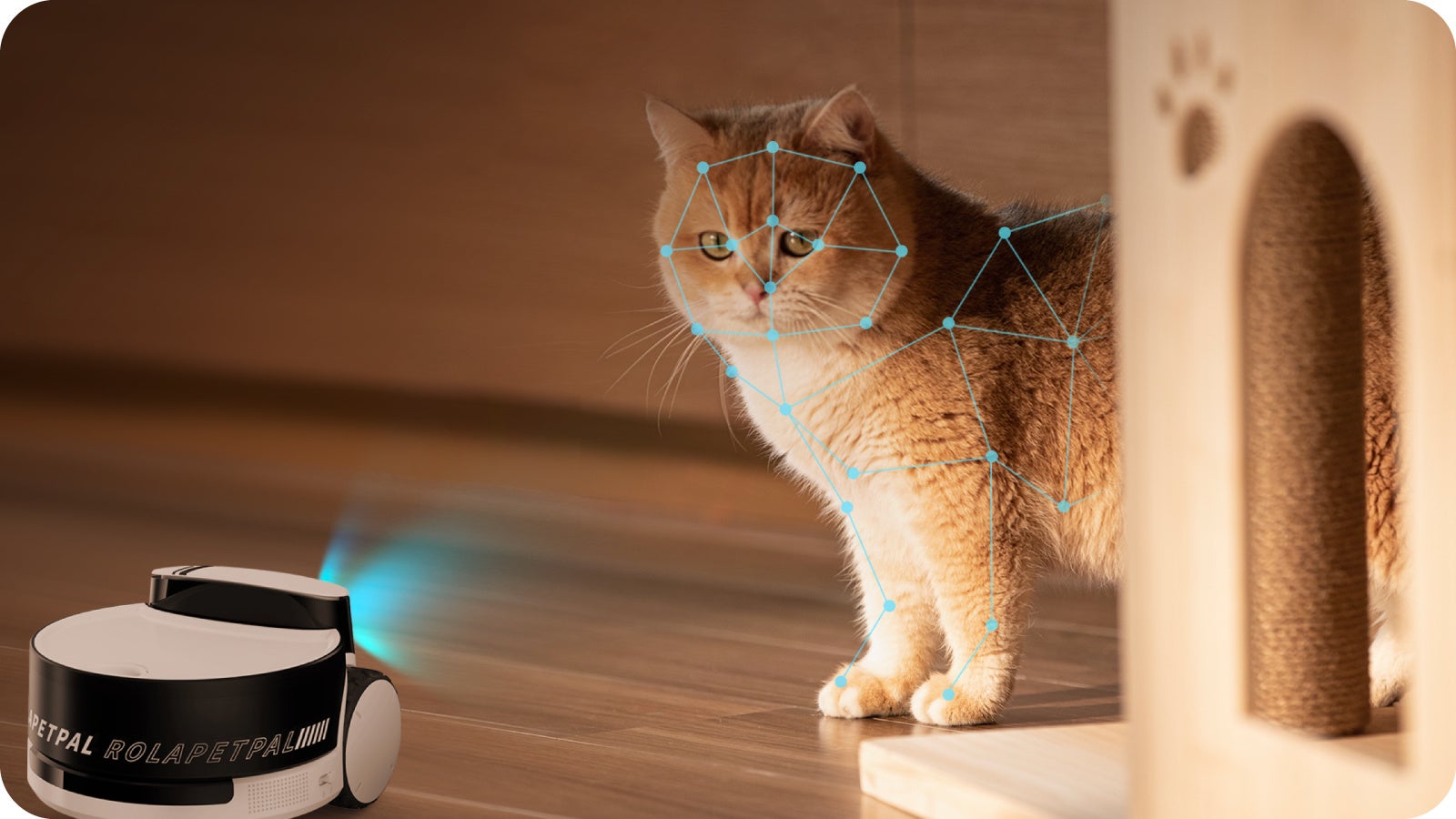 AIを活用しペットを認識・追跡。飼主の代わりにお世話をします。自動でペットと遊び、おやつをあげたりと飼主に代わってお世話をしてくれる多様な機能を持つロボットです。もちろん、飼主が遠隔で操作する事もできます。