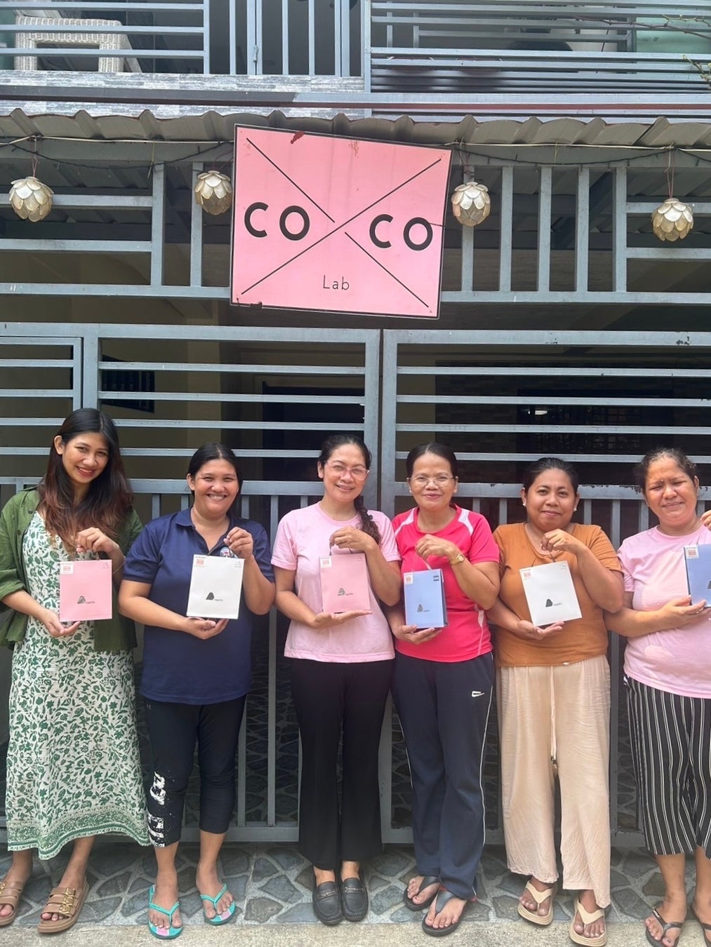 具体的には、2023年2月にNPO法人DEAR MEが設立したフィリピン・マニラの服飾技能訓練校「coxco Lab(ココラボ)」への性教育の実施や、訓練校の運営を支援します。「coxco Lab」は、貧困地域の若者や母親に無償で縫製やデザイン技術を提供し、卒業後は縫製工場での就職を支援するプログラムを提供する訓練校です。カフカ株式会社はこの活動に共感し、「coxco Lab」とのアクションの第一弾として、2024年5月よりオリジナルデザインのギフトラッピングポーチの製造を「coxco Lab」に依頼し、販売しています。第二弾は、Angeliteの製品に「coxco Lab」への寄付金付シールを貼付けることで、1枚購入ごとに支援が行われる仕組み「coxco Labhood」に加入。より一層女性を支援できる体制を整え、今後は国内の学校や企業とも連携し、性教育や支援活動を広げていきます。