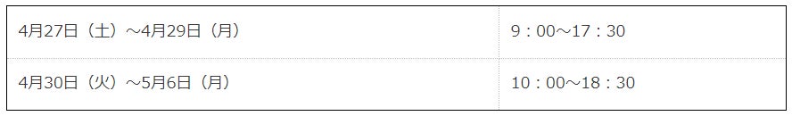 新店オープンフェア 期間中営業時間