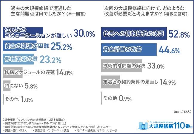 過去に大規模修繕を行った際に直面した問題点や、次の大規模修繕に向けて改善が必要なことについて、修繕経験のあるマンション管理人はどのように考えているのでしょうか?