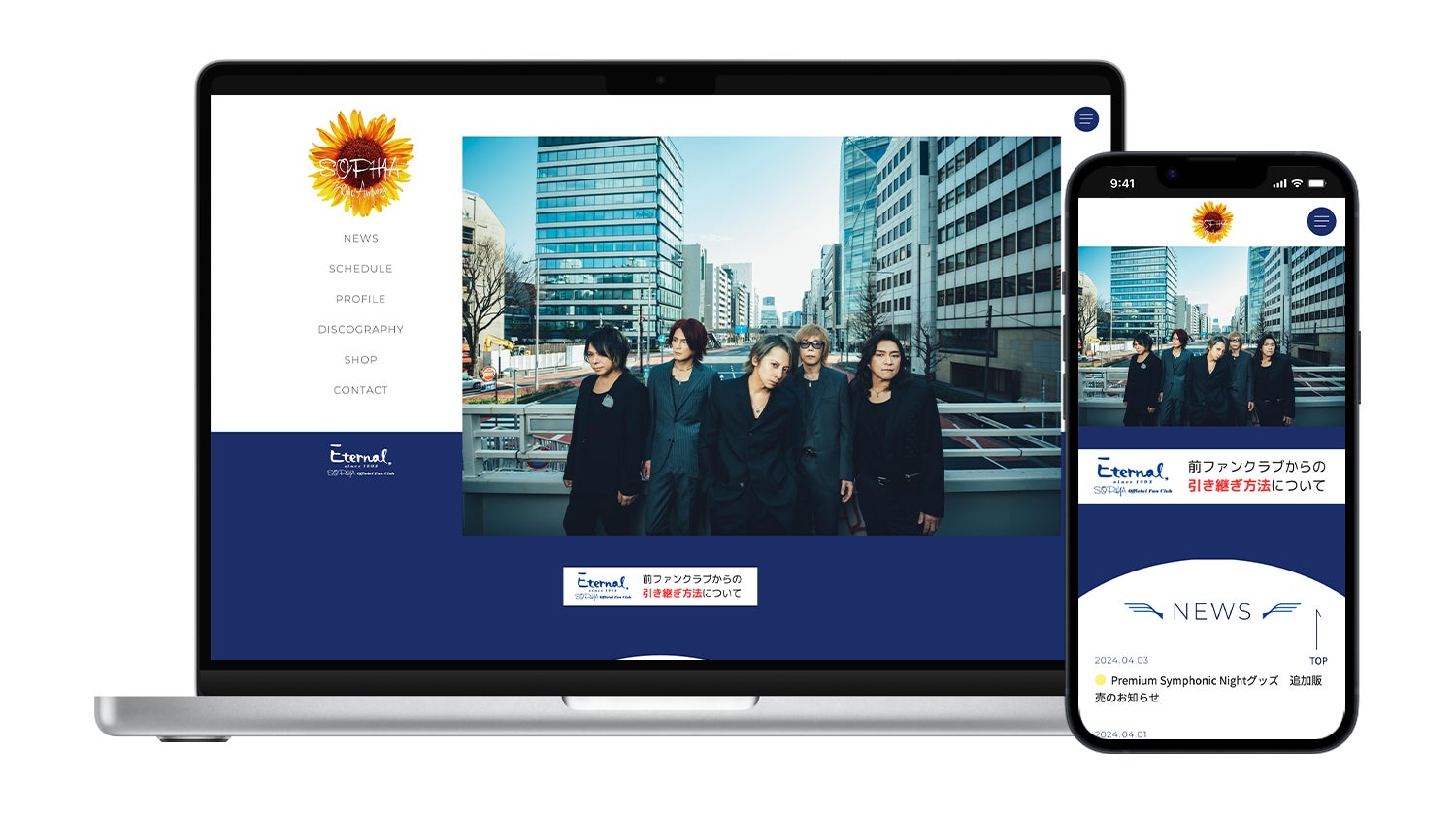この度、SOPHIAのオフィシャルサイトおよびファンクラブ「Eternal」をリニューアルしました。リニューアル後のファンクラブでは、最新ニュースやトピックスの掲載はもちろん、メルマガやバースデーメール、デジタル会報誌の配信、さらには、スペシャルな新しいコンテンツ企画も予定しております。
