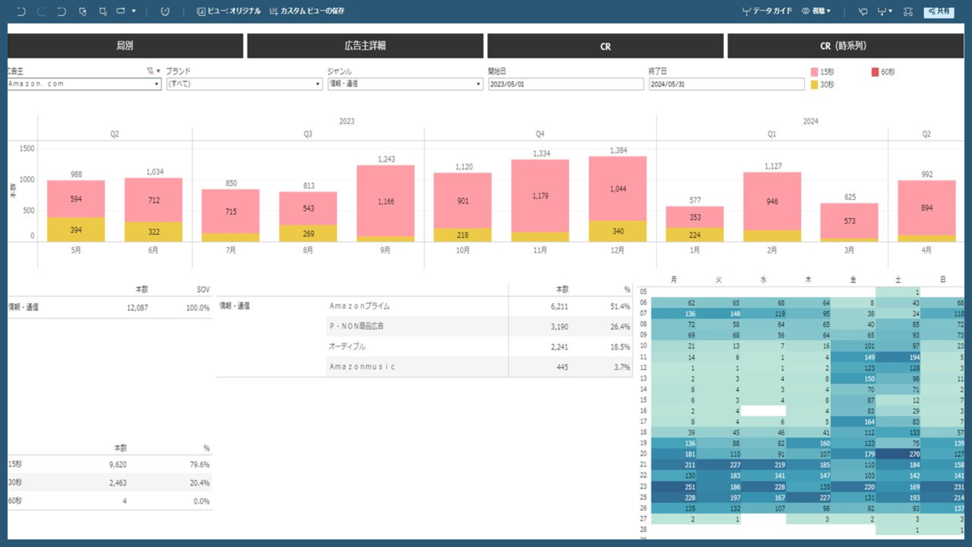 広告主・銘柄(商品)・局でのTV出稿ヒートマップ機能 (TVCM)※NAS広告BIツール(Tableau対応)のみ