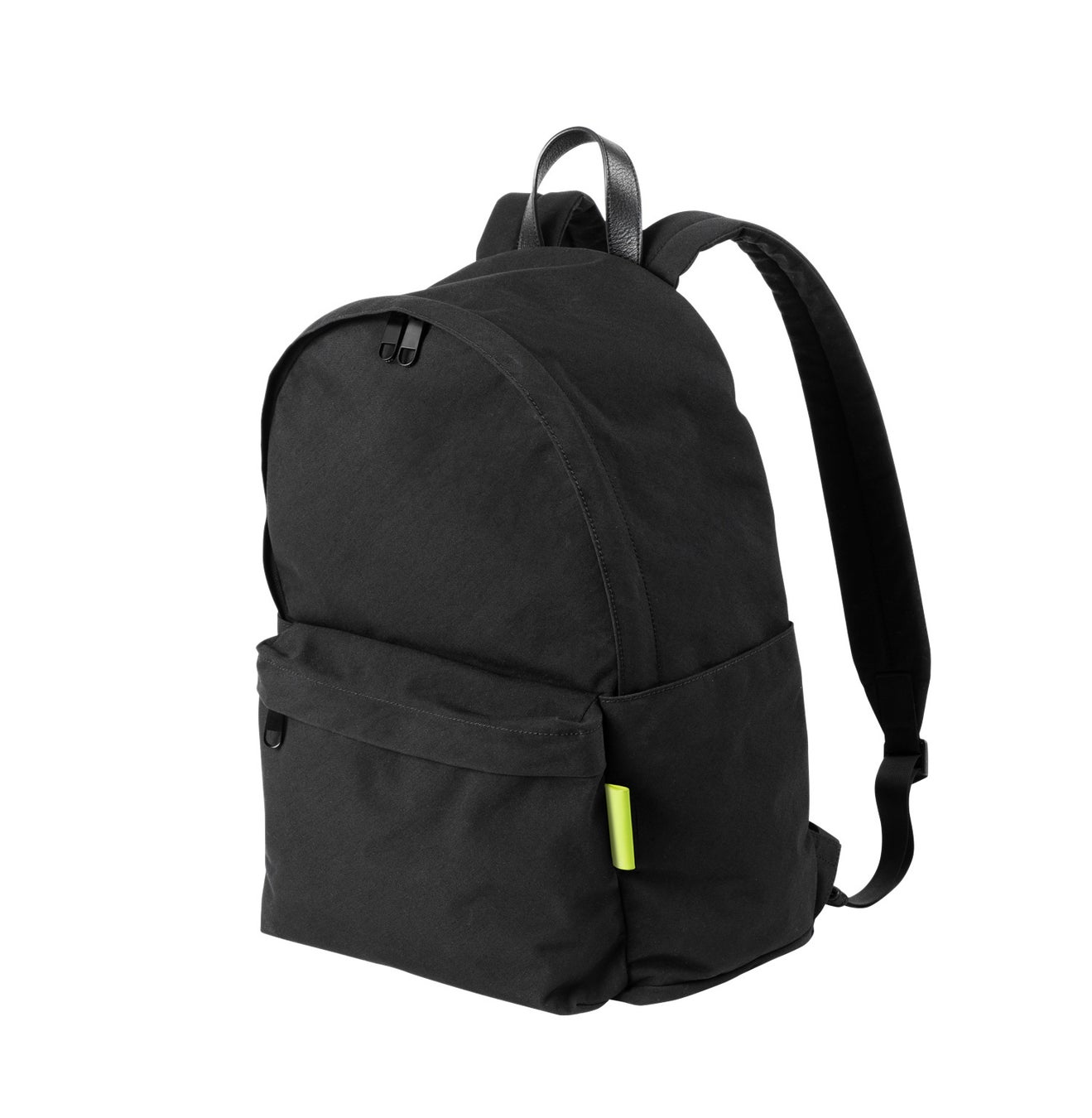 新型の発売を記念し、バックパックMediumでは、外装ポケットの横に付いている革タグの数量限定カラーを予約発売します。革タグの色はバッグの黒地に映える「ライムグリーン」と「オフホワイト」の2色です(通常商品のタグは「ブラック」)。価格は通常商品と同じ¥39,600(税込)です。