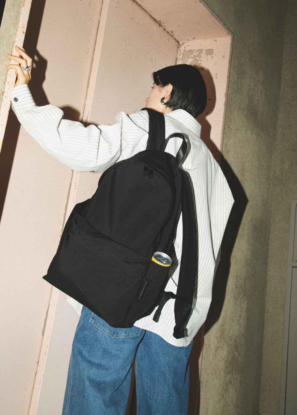「CORDURA® バックパック Medium」(39,600円税込)は、CORDURA® バックパック Largeのサイズバリエーションです。軽量で撥水性のあるナイロンを使用し、特有のハリ感やたわみ感を生かしたシルエットはそのままに、より多くの方にフィットするサイズに仕上げました。鞄本体のサイズをひと回り小さく設計しましたが、外装ポケットと内装ポケットはLargeサイズとほぼ同サイズに設計し、充実した収納容量の維持とATTITU特有の印象を意識しています。