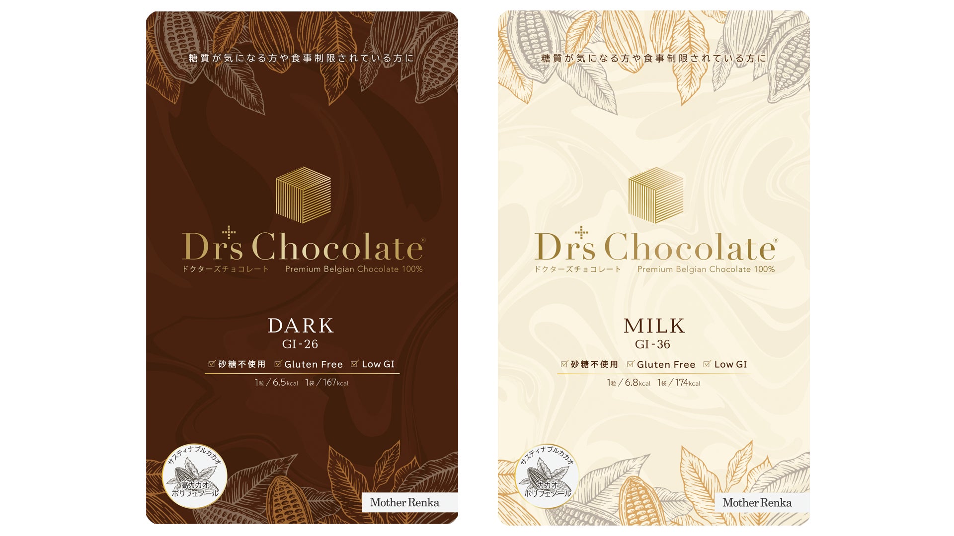 株式会社マザーレンカが製造・販売する『ドクターズチョコレート』は、最高級のベルギーチョコレートを100%使用し、当社独自の製法で日本人の嗜好にあわせた食感と風味に仕上げたプレミアムチョコレートです。おいしさに加え、砂糖不使用ながら低カロリー甘味料「マルチトール」を用いることで、香り高く深い味わいの低GIチョコレートを実現しました。一般的なチョコレートの約3割~4割まで抑えた 野菜に匹敵する低GI(低糖質)のチョコレートとなっています。『ドクターズチョコレート』は、糖質が気になる方のおやつとして、多くの管理栄養士や薬剤師の方からも推奨され、約10,000の調剤薬局と約1,000の病院およびクリニックにて、取り扱われており(2017年4月時点)、ダイエット中の方にもおすすめです。
