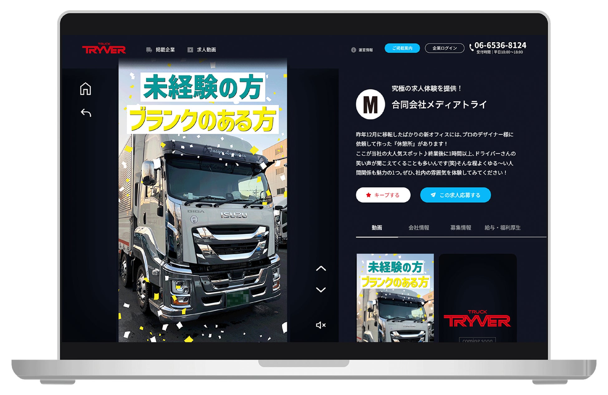 縦型ショート動画に特化したトラックドライバー専門求人情報サイト「TRYVER」を公開!