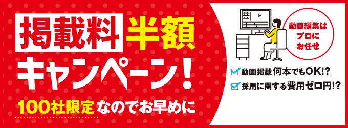 サイトオープンを記念して掲載料半額キャンペーン実施!標準プランのレギュラープランが1年間半額にてご利用可能となります。