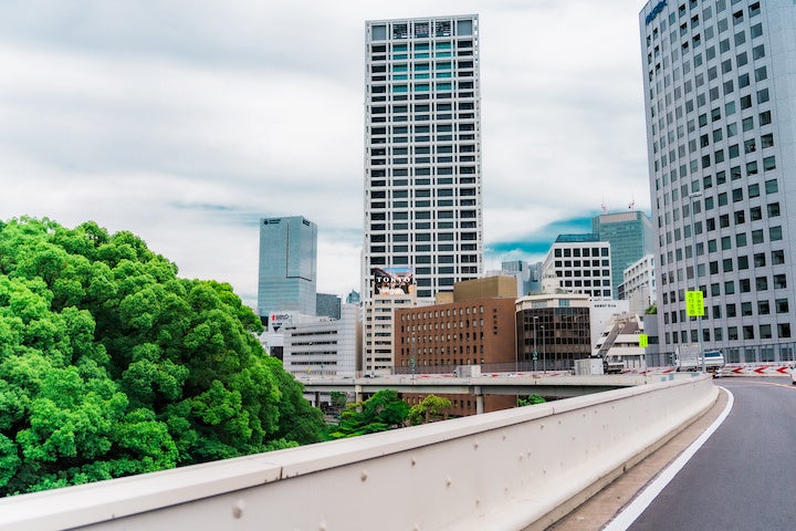 5、都会にありながら自然の緑と看板の融合