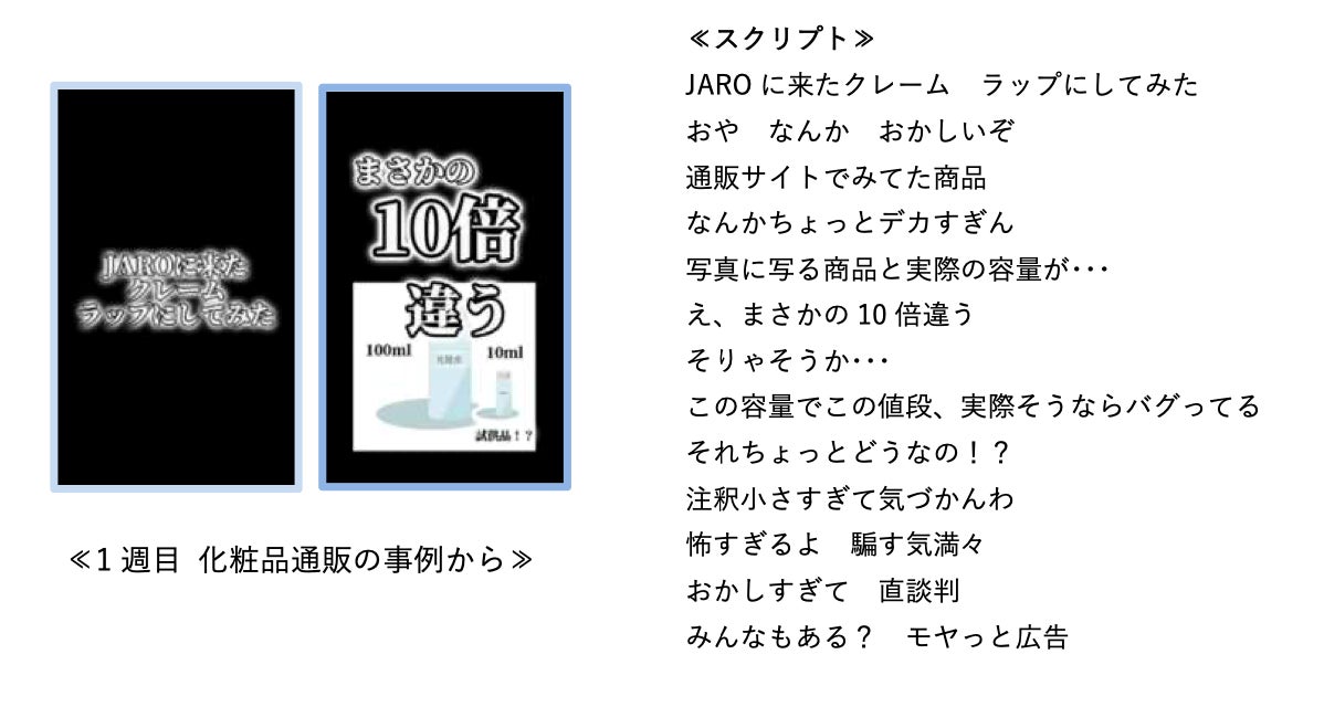 Z世代からJAROに届いた実際の苦情をもとに、固有名詞等を伏せ一般化させた形で「あるある動画」をハローZが作成。2024年4月より、JAROのTikTokアカウントから週1回、動画投稿を行っていきます。若年層へのJAROの認知アップを図るとともに、「うそ・大げさ・紛らわしい広告・表示に出会ったときにはJAROに意見を言おう」という認識を醸成・普及していきます。