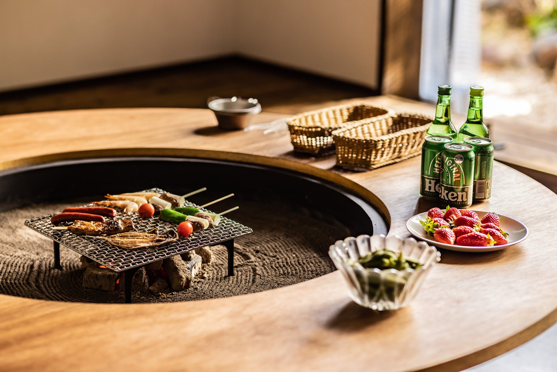 ※囲炉裏部屋で屋内BBQがお楽しみいただけます。※囲炉裏の火起こしと網代が料金に含まれます。