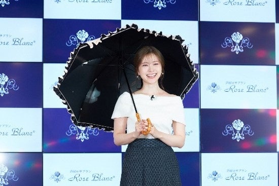 今回の記者会見では、白石さんのブランドアンバサダー就任を記念して最新ブランドイメージ動画が公開されました。動画では、芦屋ロサブランの日傘を華麗に持った白石さんの様々な姿が披露されました。アンバサダー就任について「私にとっても日傘は昔から必需品だったので、このようにお仕事を頂けたことはすごく嬉しいです。そして、芦屋ロサブランは、おしゃれな商品がとても多く、傘をさすのも楽しく、日常も明るくなるだろうなと思いました。」とコメントしました。